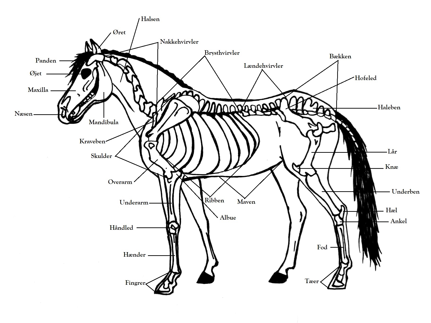 Med udgangspunkt i opslagsværket i bogen har du nu adgang til denne illustration, som forbinder bogens afsnit - 'Kortet til livet' - med hestens anatomi. Har du hest symptomer, spejler den dig eller den som ejer hesten.